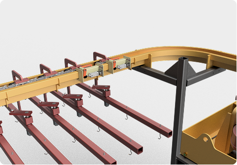 Custom Tow Line (In-floor / On-floor), & Overhead Conveyor engineered for Turnkey Finishing Solutions.